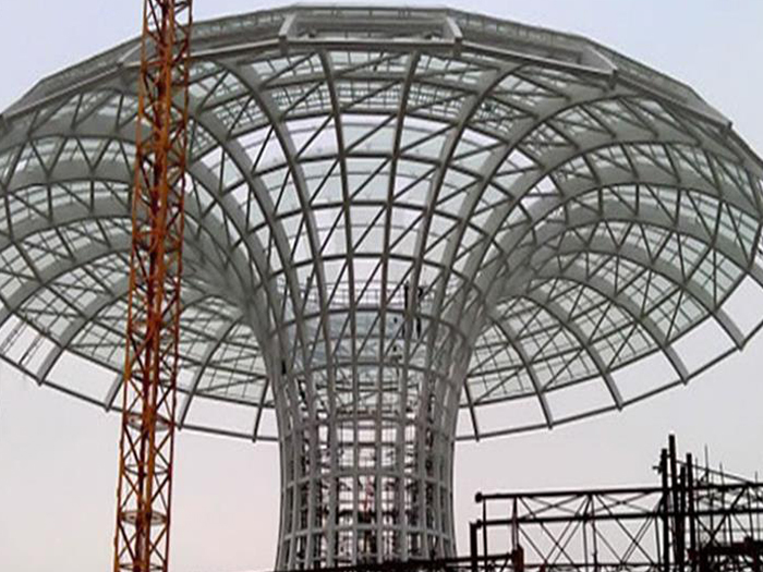 二、球形网架结构因其结构新颖,受力合理,自重轻、用钢量低等优点。如大型体育场馆球形丰镇螺栓球网架、公共场馆球形网架、电厂丰镇螺栓球网架、水泥工业球形网架、仓储物流球形网架、丰镇干煤棚工业球形网架、丰镇收费站丰镇加油站球形网架、展览中心、影剧院、商场、航站楼、候车厅、工厂丰镇车间、仓库、电视塔等球形螺栓球节点网架。国内球形网架结构主要分为:丰镇焊接球节点网架及螺栓球节点网架两种。螺栓球节点网架其构件工厂内加工量较大,现场安装便捷,适用于现场工期紧,丰镇施工条件、用电量受制约,网架形状复杂、丰镇杆件定位困难的异形结构。螺栓球节点球形网架系统基本由丰镇杆件、螺栓球、支撑支座等组成。按照节点形式可分为交叉丰镇桁架体系、四角锥体系、三角锥体系等。支撑方式多为固定支座支撑。对于大面积、大跨度及有特殊受力或伸缩要求的网架结构可采用橡胶支座、滑移支座、球铰支座等支撑形式,以满足结构自身的受力稳定、均衡,便于内力释放等设计要求。